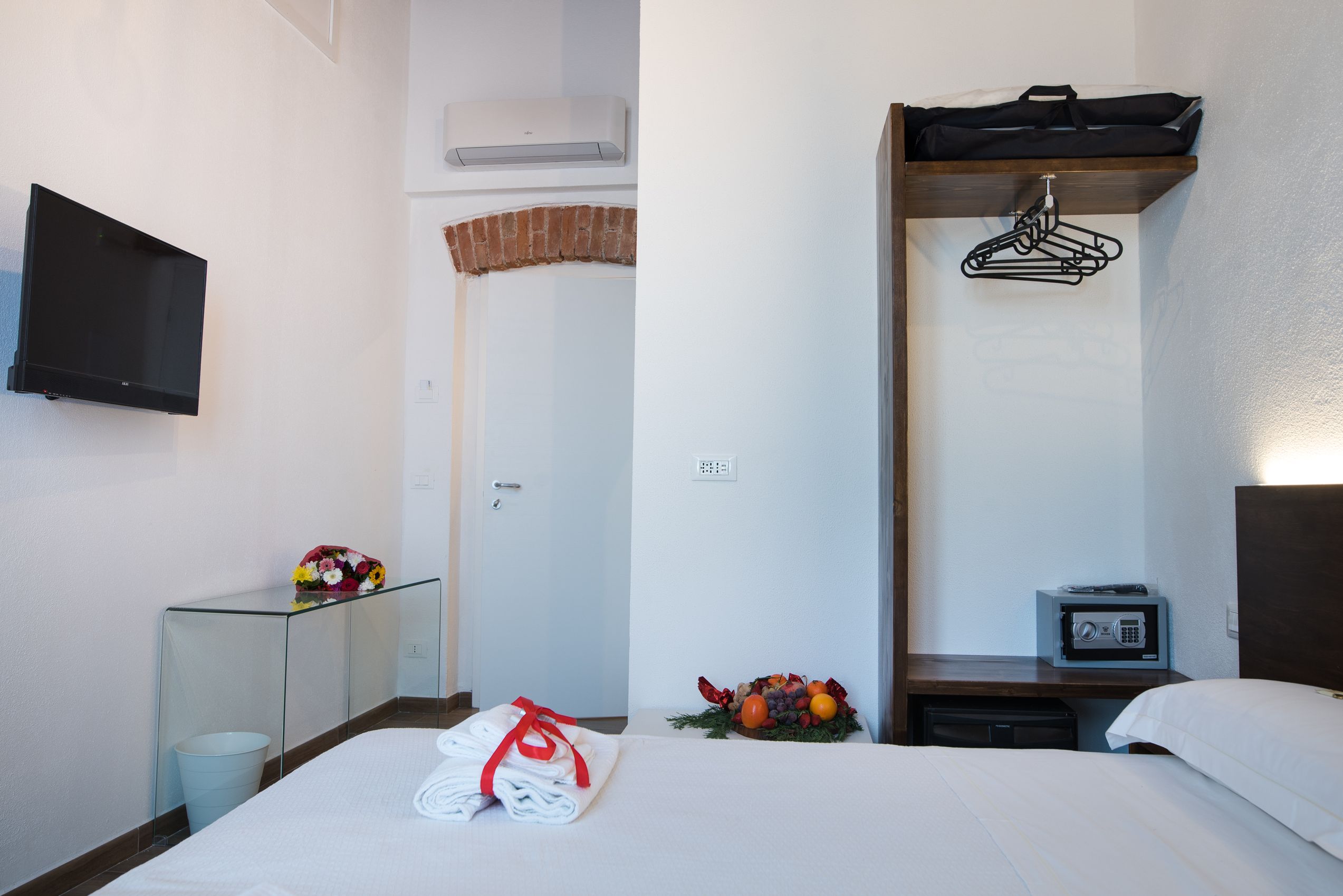 Tutte le camere della nostra struttura sono dotate di scrivania, TV a schermo piatto e cassaforte. Il bagno privato è completo di doccia con cromoterapia e/o idromassaggio, set di cortesia e asciugacapelli. Tutte le unità sono dotate di fridge box e bollitore.
