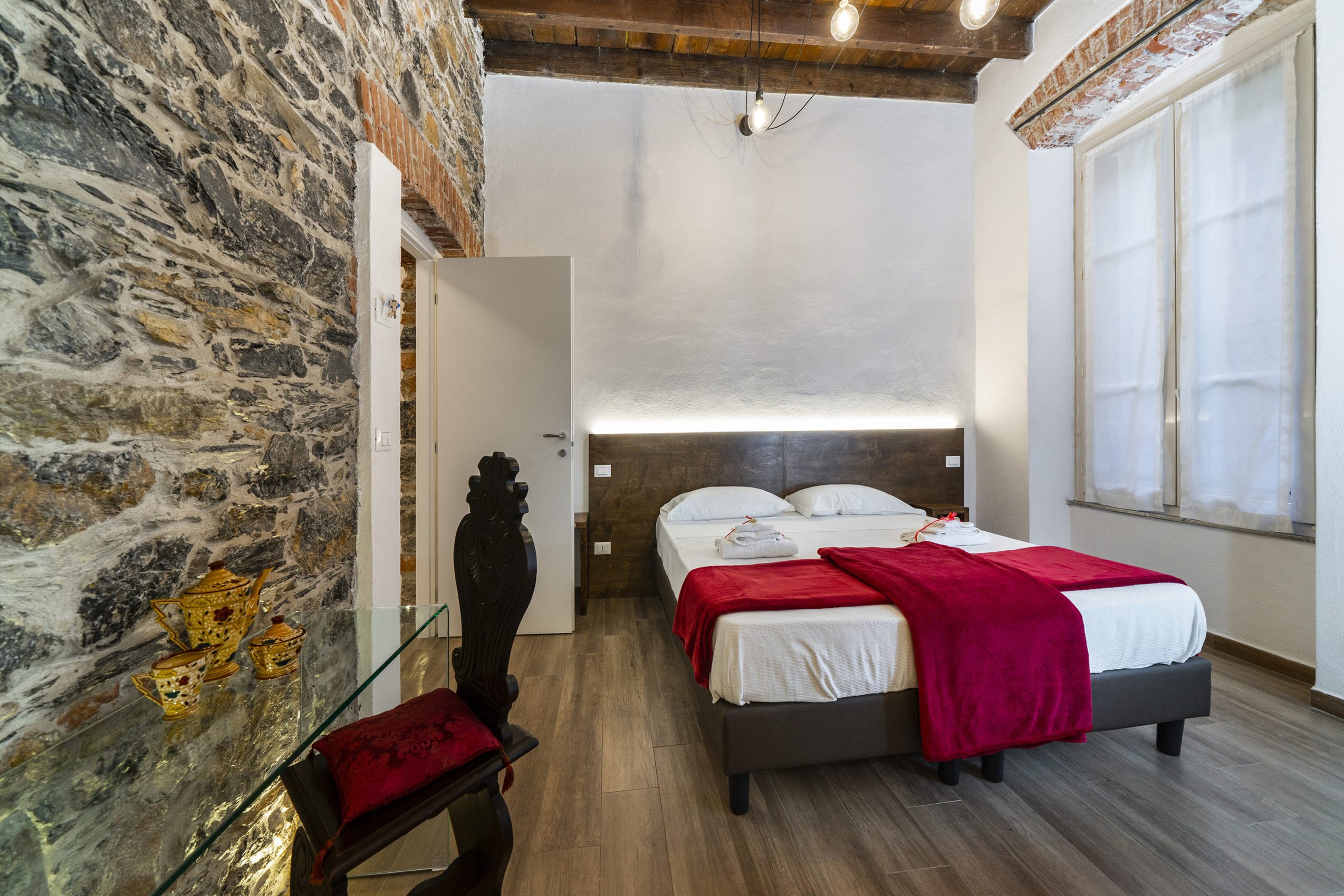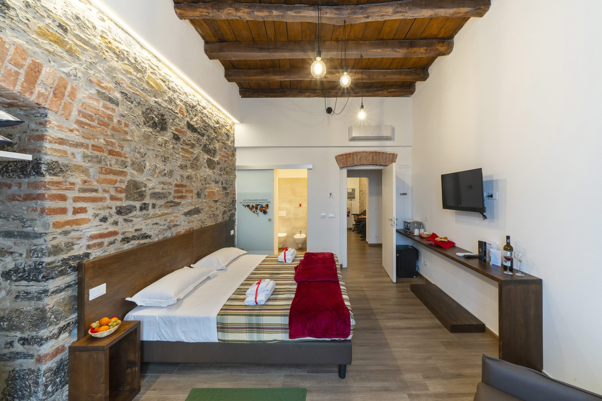 Camera Superior con letto king size e doccia con getto idromassaggio e punto luce cromoterapia, particolarmente indicata agli amanti della quiete, avendo la finestra che si affaccia su piccola area verde all’interno del palazzo.