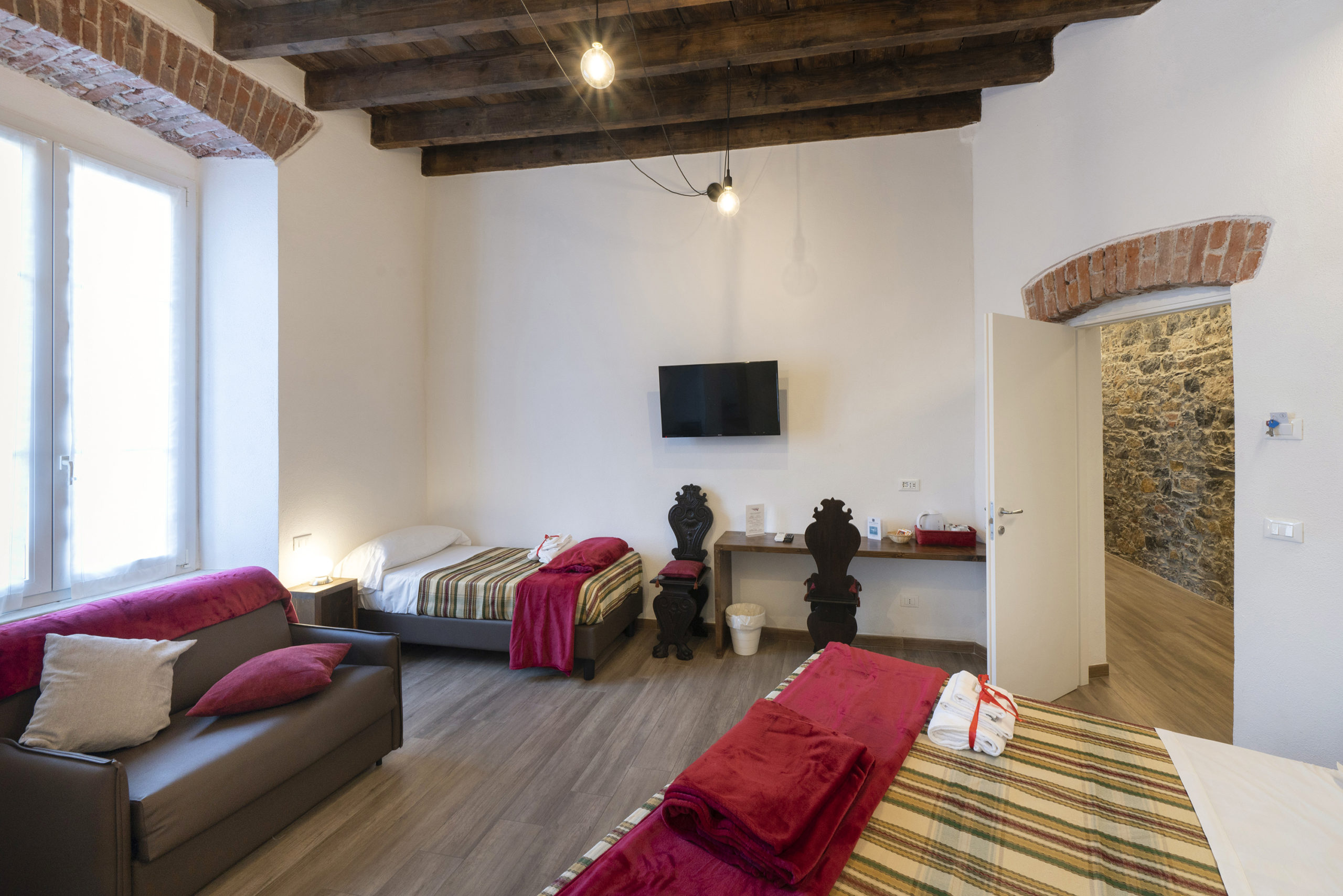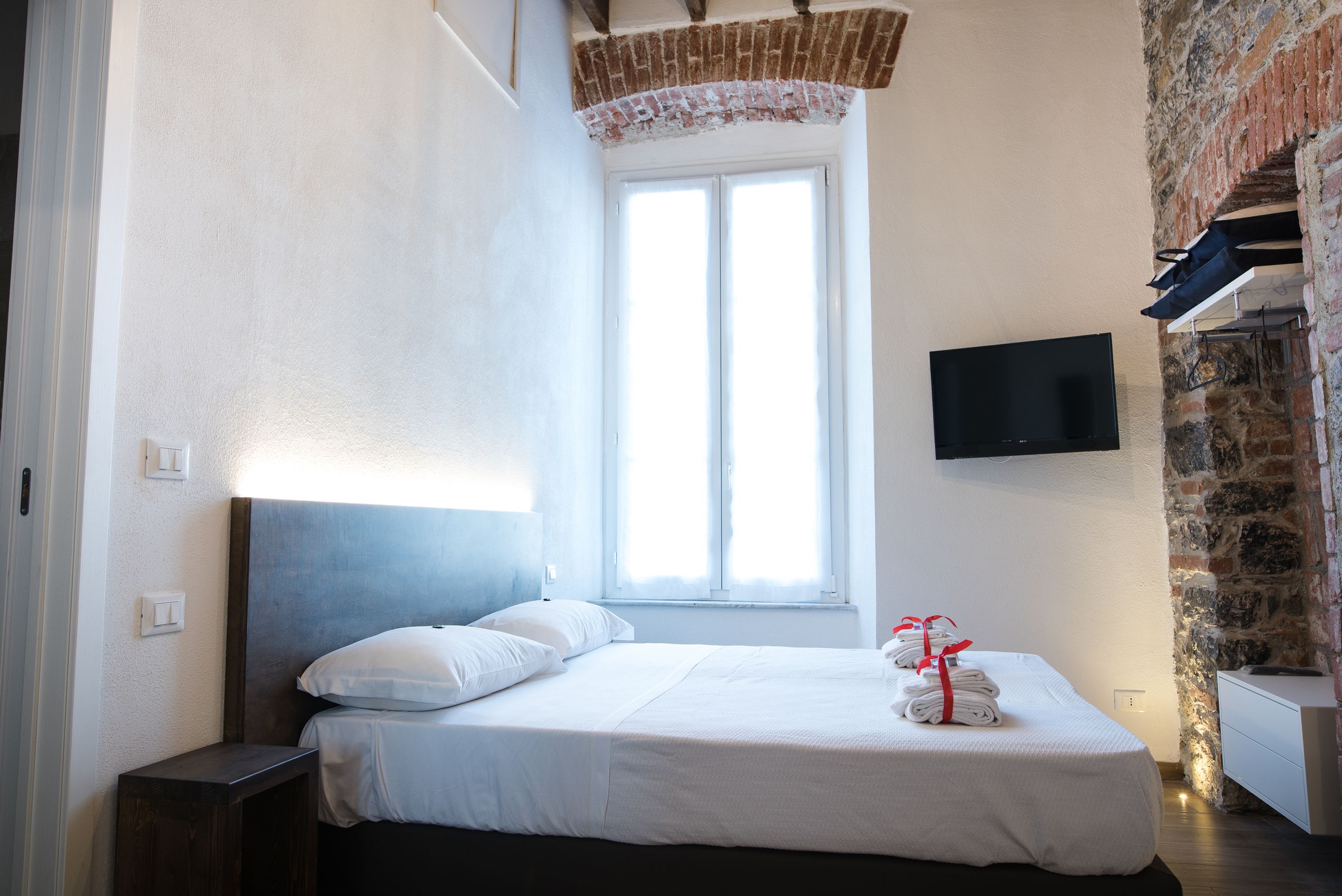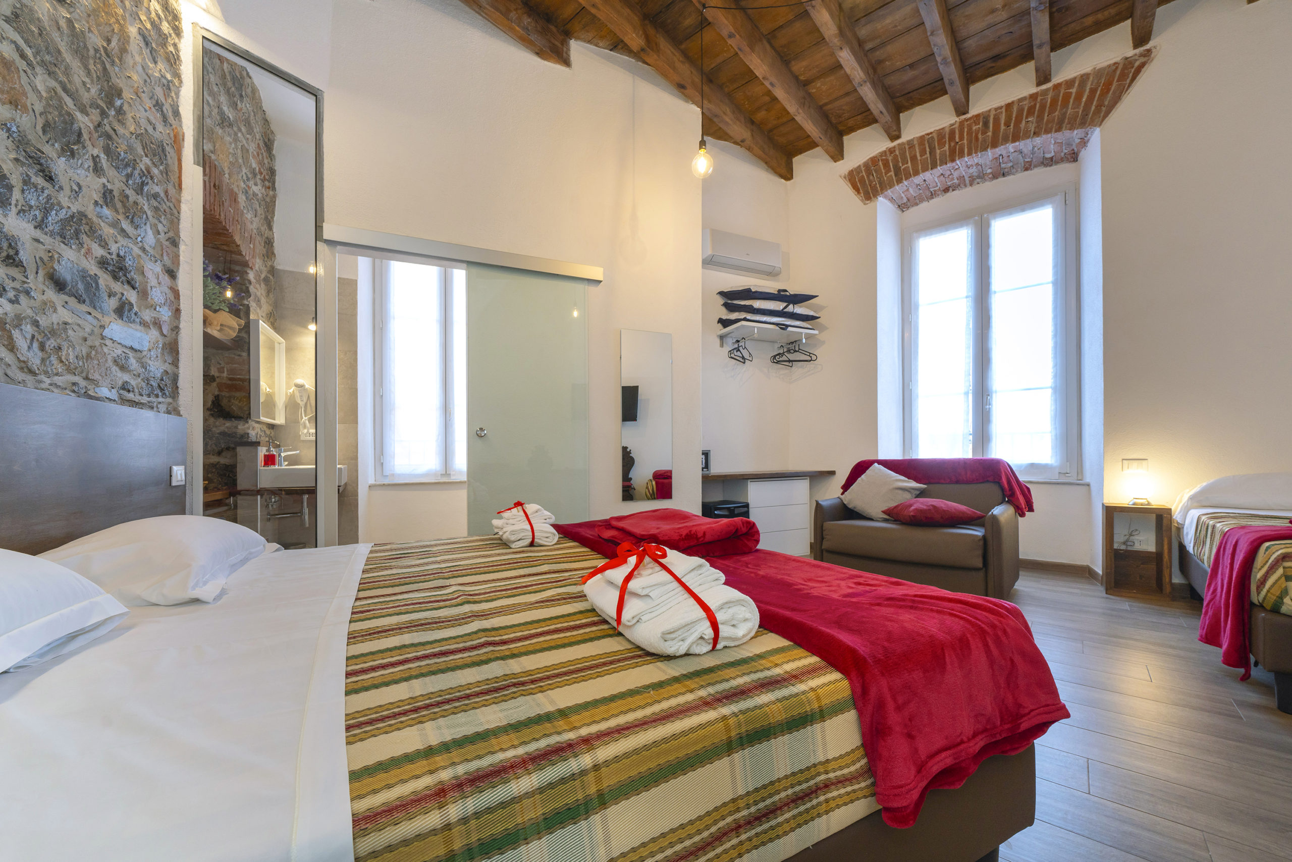 Camera Superior con letto king size e doccia con getto idromassaggio e punto luce cromoterapia, particolarmente indicata per famiglie e gruppi di amici, doppia finestra con vista città su palazzi storici e zona pedonale. La camera può accogliere letto supplementare su richiesta a pagamento.